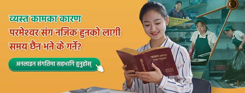 बाइबलमा लेखिएको छ, “कतिको यसो गर्ने बानी भए पनि हामी एकसाथ भेला हुने कार्यलाई नत्यागौँ, तर एक-अर्कालाई अर्ती देऔँ: किनकि दिन झन्-झन् नजिक आउँदैछ” (हिब्रू १०:२५)। भेलाहरूमा उपस्थित हुनु भनेको हामी ख्रीष्टियानहरूले पालन गर्नुपर्ने कुरा हो। तर अब, केही दाजुभाइ र दिदिबहिनीहरूले यो नियमित रूपमा गर्न सक्दैनन् किनकि तिनीहरू आफ्नो काम र पारिवारिक जीवनको बारेमा चिन्ता गर्छन्। तिनीहरूमध्ये कोहीले त भेलाहरूमा उपस्थित हुनुलाई एक अतिरिक्त बोझको रूपमा पनि लिन्छन्, र आफैंले घरमा परमेश्वरको केही वचनहरू पढ्नु मात्र पनि पर्याप्त छ भन्ने सोच्छन्।